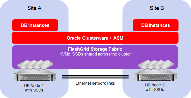 FlashGrid Storage Fabric is the simplest and the highest performance storage solution for extended distance (a.k.a. stretched) Oracle RAC clusters.